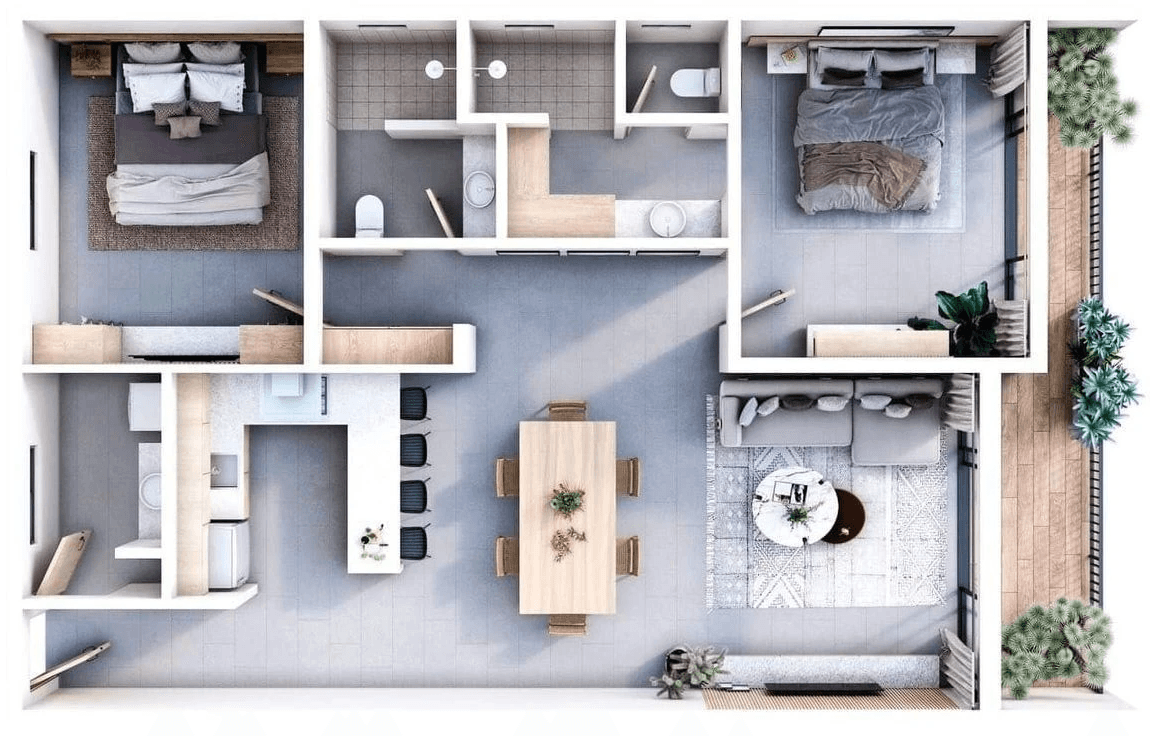 Ci occupiamo della progettazione e della decorazione degli spazi interni delle abitazioni private, come case, appartamenti e ville. I nostri obiettivi principali sono la creazione di ambienti esteticamente piacevoli, funzionali e confortevoli che rispecchino il gusto personale dei proprietari. Ci concentriamo su dettagli come la disposizione del layout, la selezione di mobili, colori, materiali e decorazioni per creare spazi abitativi che soddisfino le esigenze e le preferenze dei clienti.