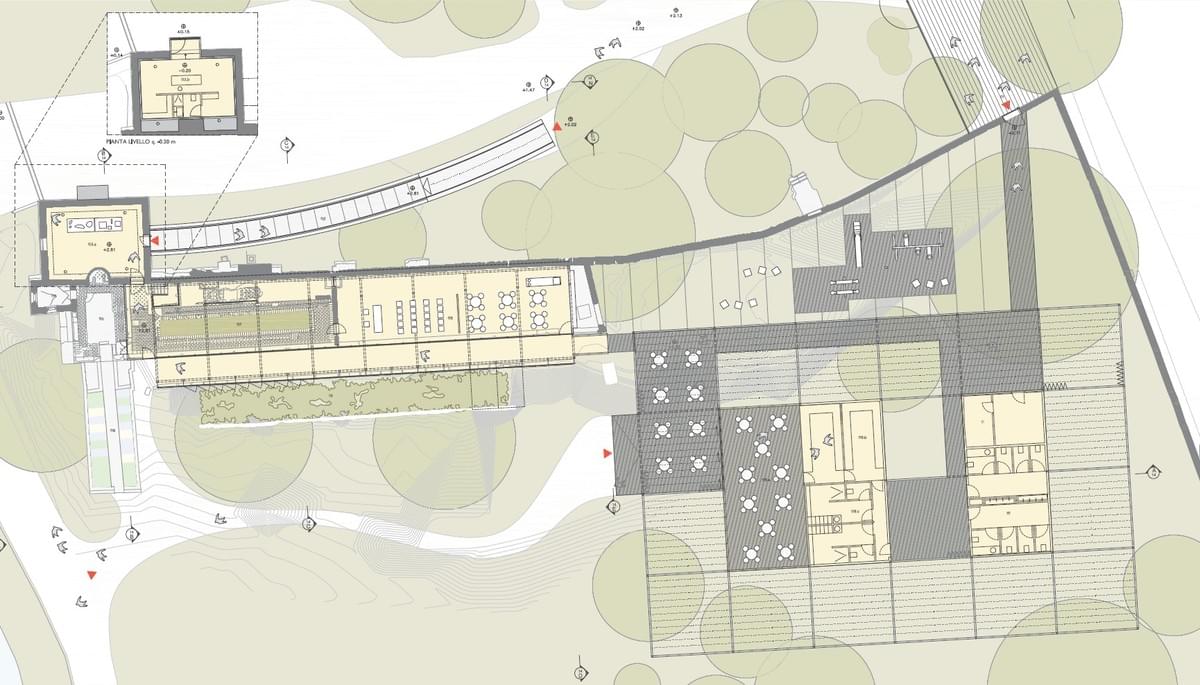 Riorganizzazione degli spazi con funzioni didattiche, espositive e polifunzionali, integrate da aree esterne dedicate alla sosta e alla fruizione pubblica.